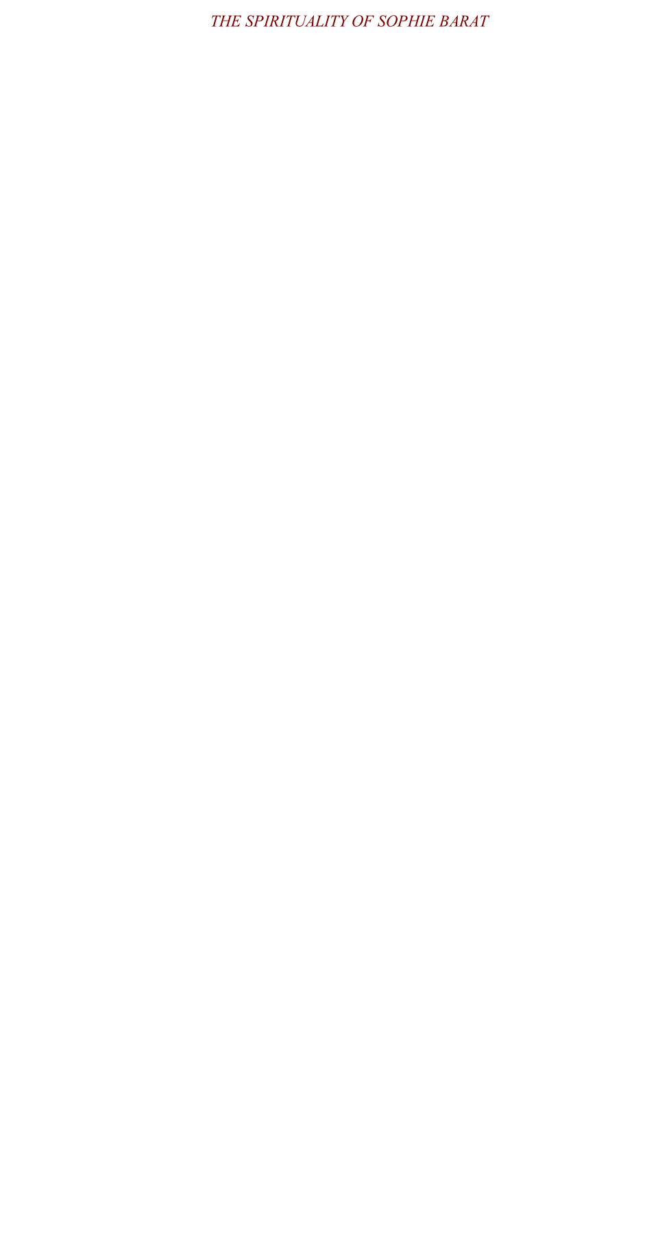 All these elements, created Sophie Barat's spirituality. They were the designs of God's providence in Sophie's life, and all contributed to helping Sophie fulfil her destiny. The core of Sophie's own spiritual journey was to move out of the dark power of Jansenism into the sunlight of God's tender love.This was her reason and motive for founding the Society of the Sacred Heart in 1800, in the midst of a world shattered by the Revolution. And in her own life and experience, Sophie Barat embodied the spirituality of the Society of the Sacred Heart.